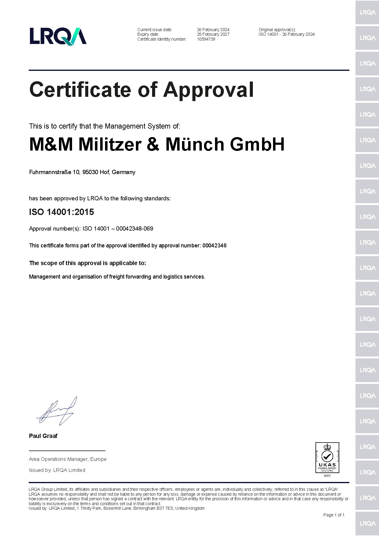 ISO 14001 M&M Militzer & Münch Deutsche Holding GmbH