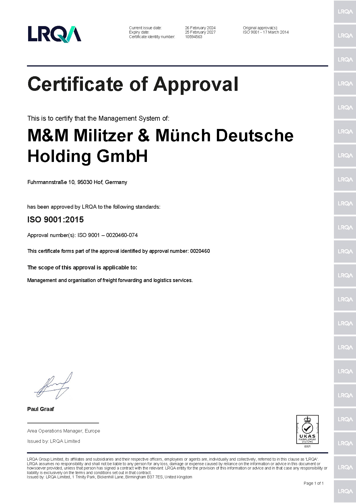 In unseren Entscheidungsprozessen und in unseren täglichen Geschäftsabwicklungen berücksichtigen wir daher gesamtgesellschaftliche und ökologische Gesichtspunkte. Unser Qualitätssystem ist ein wichtiges Management- instrument, um die Weiterentwicklung der Militzer & Münch Unternehmen proaktiv zu steuern und Prozesse zum Nutzen unserer Kunden zu optimieren.Einheitliche, gruppenweite Qualitätsrichtlinien und interne Schulungen und Audits stärken den Qualitätsgedanken bei unseren Mitarbeitern, sorgen für einen hohen Service und bilden die Grundlage für die Zertifizierung gemäß den ISO 9001:2015 Standards. Unser eigener Qualitätsanspruch bei der Bereitstellung unserer Dienstleistungen an unsere Kunden ist hoch. Die Basis hierfür bilden u.a. unsere Zertifikate und Verträge welche uns ermöglichen unseren Kunden erstklassige Leistungen zu bieten.